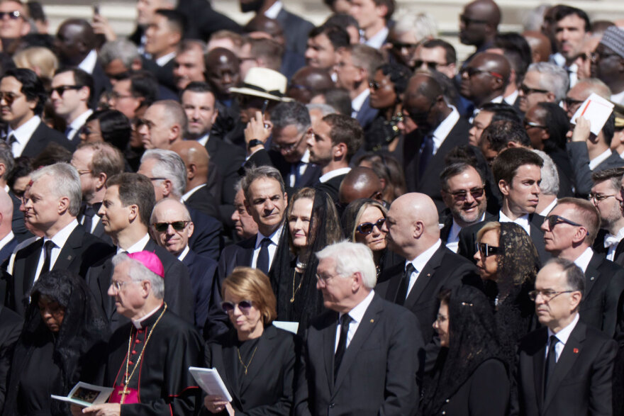 Πάνω από 250.000 πιστοί κατέκλυσαν την πλατεία του Αγίου Πέτρου στο Βατικανό για να παρακολουθήσουν την κηδεία, η οποία ξεκίνησε στις 10:10 τοπική ώρα. Δεκάδες διεθνείς ηγέτες βρέθηκαν στις θέσεις των επισήμων, συμπεριλαμβανομένων του Προέδρου των ΗΠΑ Ντόναλντ Τραμπ, του Γάλλου Προέδρου Εμάνουελ Μακρόν, του Ουκρανού Προέδρου Βολοντίμιρ Ζελένσκι, του Έλληνα Πρωθυπουργού Κυριάκου Μητσοτάκη και της Προέδρου της Ευρωπαϊκής Επιτροπής Ούρσουλα φον ντερ Λάιεν.