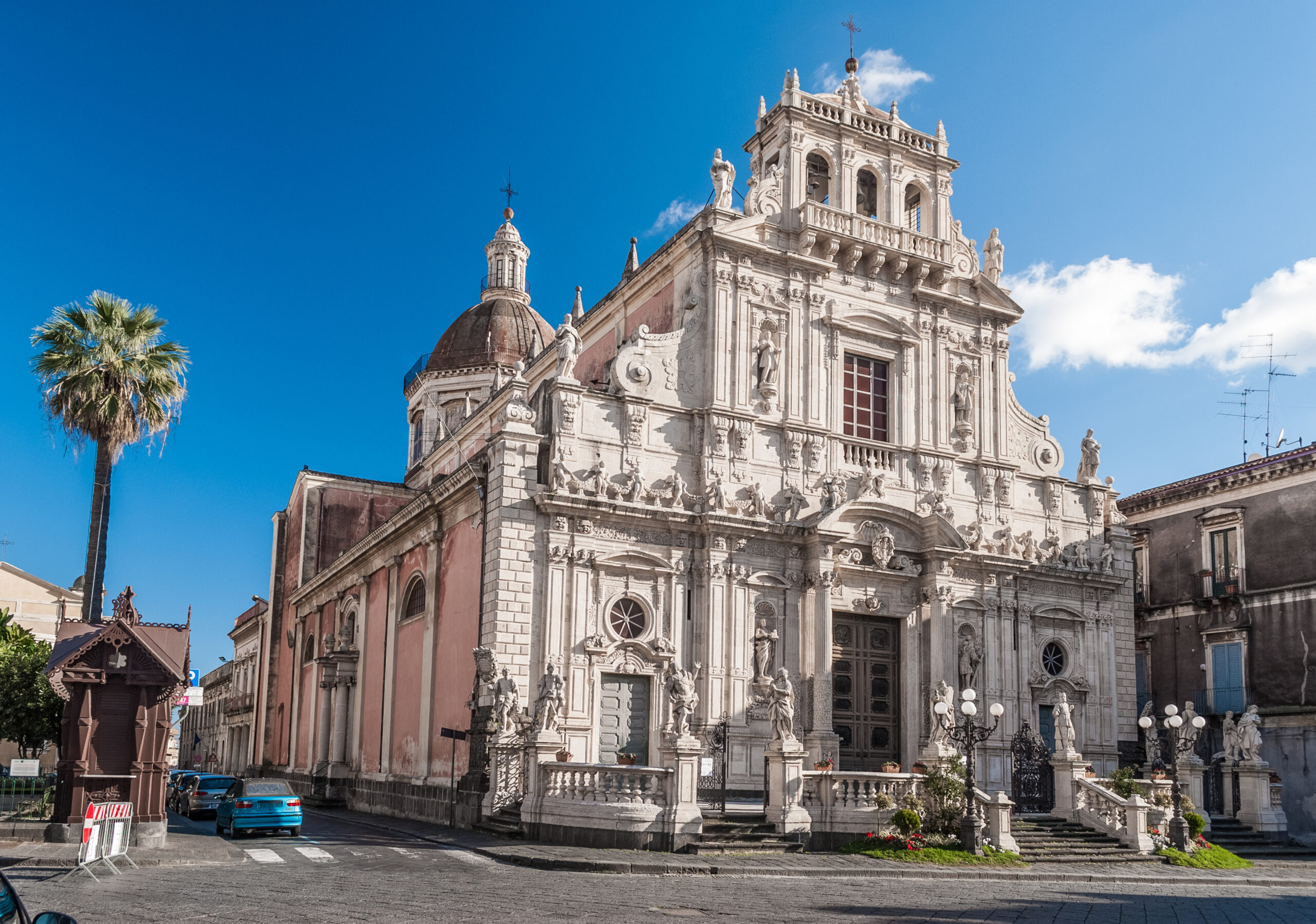 Η Basilica San Sebastiano με τη γεμάτη αγάλματα και μορφές αγγέλων πρόσοψη/Photo: Shutterstock