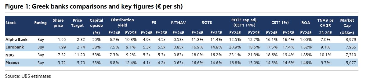 Η UBS βλέπει, επίσης, σημαντική ανοδική πορεία για τις ελληνικές τράπεζες, καθώς και δυνατότητες διανομής.