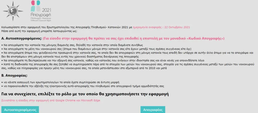Η διαδικασία μέσω της εφαρμογής «Απογραφή Πληθυσμού – Κατοικιών 2021»