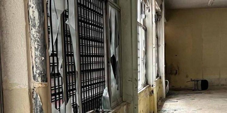 Οι καταστροφές είναι εκτεταμένες σε όλο τον χώρο και το μόνο που αντικρίζει κανείς είναι γκρεμισμένους τοίχους, σωλήνες σκαλωσιών διάσπαρτες τριγύρω, διαλυμένες ηλεκτρολογικές εγκαταστάσεις, κατεβασμένα κιγκλιδώματα από τα παράθυρα, συνθήματα με σπρέι και πεταμένους πυροσβεστήρες.