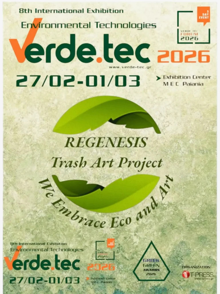 Η συμμετοχή του REGENESIS, για ακόμη μία χρονιά στην 8η Verde Tec 2026, έχει ως κύριο στόχο την ανάδειξη της Τέχνης ως αποτελεσματικού μέσου περιβαλλοντικής ενημέρωσης και ενίσχυσης της οικολογικής συνείδησης.