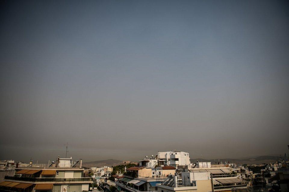 Πλέον ο καπνός γίνεται ορατός και από την Αττική κοιτώντας κανείς από το κέντρο της Αθήνας προς το παραλιακό μέτωπο και νότια νοτιοανατολικά.