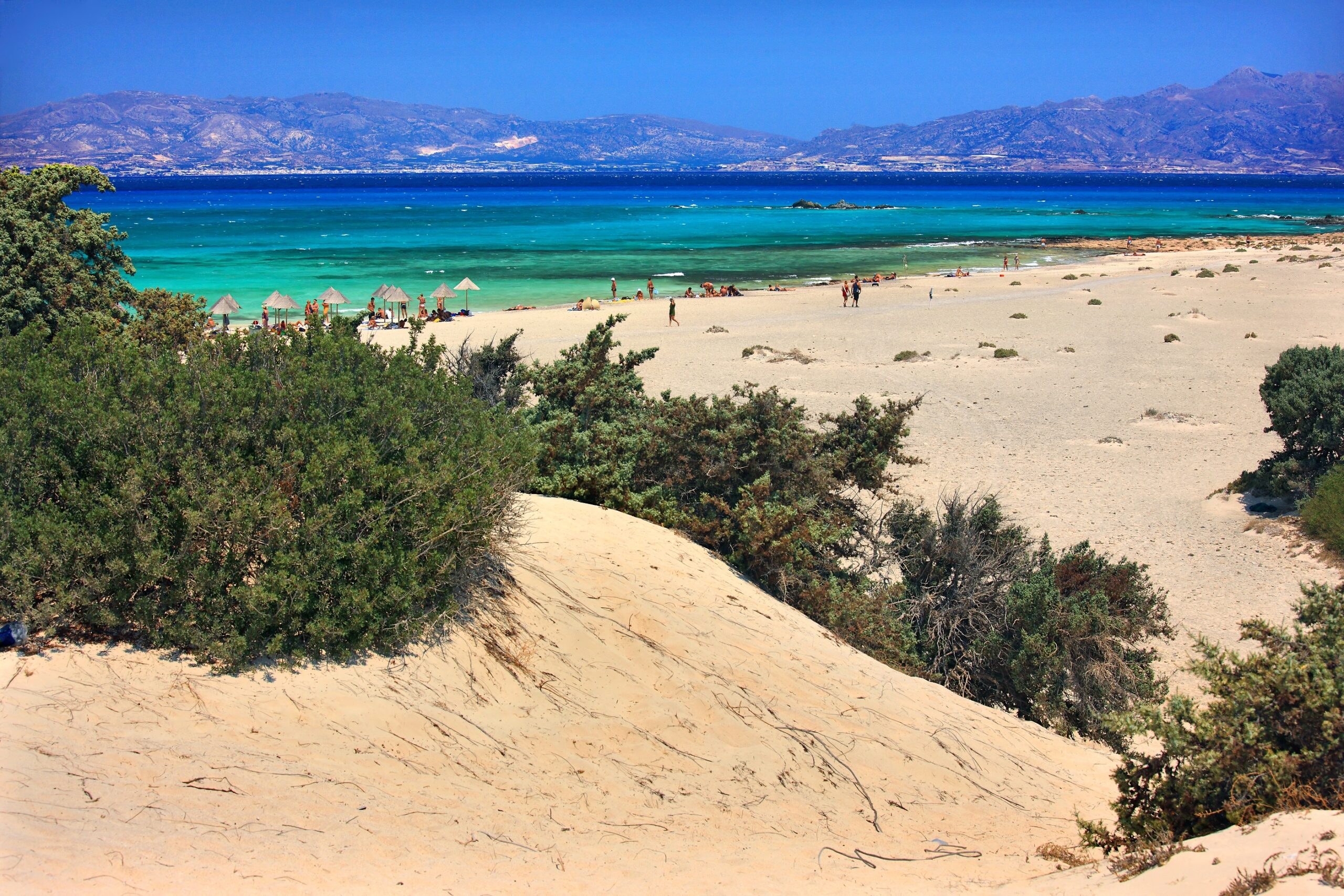 Οι παραλίες του νησιού είναι αμμώδεις και οι περισσότερες έχουν αμμοθίνες, κέδρους, θαμνοκυπάρισσα, χαμηλή, θαμνώδη βλάστηση και άπειρα κοχύλια. Αν και στο σύνολό τους έχουν βραχώδη βυθό, ιδίως στην αρχή τους, είναι πολύ δημοφιλείς, καθώς το τοπίο και τα γαλαζοπράσινα νερά τους είναι συγκλονιστικής ομορφιάς. Καραβάκια αναχωρούν καθημερινά από την Ιεράπετρα και χρειάζονται περίπου 45-50 λεπτά για να φτάσουν στο νότιο λιμάνι του νησιού, στην παραλία Βουγιού Μάτι. Για λόγους προστασίας του νησιού, τα καραβάκια προσεγγίζουν σε κοντινή απόσταση τέτοια ώστε να μπορείτε να κολυμπήσετε μέχρι την ακτή. Από εκεί ξεκινά μονοπάτι ανάμεσα στους θαλασσόκεδρους που οδηγεί στην πιο δημοφιλή παραλία, την Μπελεγρίνα. Τα προηγούμενα χρόνια ήταν οργανωμένη, πλέον όμως όχι. Ωστόσο, για τον παραπάνω λόγο, η πρόσβαση στο εσωτερικό του νησιού δεν επιτρέπεται, επομένως μόνο παραλιακά μπορείτε να επισκεφθείτε την κάθε παραλία.