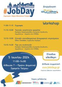 Το #JobDay Αφετηρία – Δήμος Μοσχάτου-Ταύρου θα διεξαχθεί στις 5 Ιουνίου 2024, από τις 11:00 έως τις 14:00, στην Αίθουσα 7 των πρώην Δημοτικών Σφαγείων Ταύρου, Πειραιώς και Επταλόφου (παραπλεύρως του π. Δημαρχείου Ταύρου).