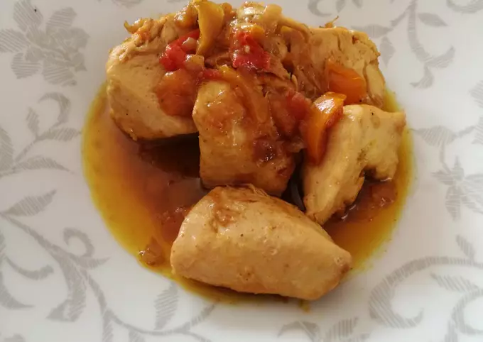 Στο τέλος βάζουμε τις πιπεριές μαζί με το χυμό λεμονιού. Προσθέτουμε μια κούπα ζεστό νερό και το αφήνουμε για 30 λεπτά να σιγοβρασει.