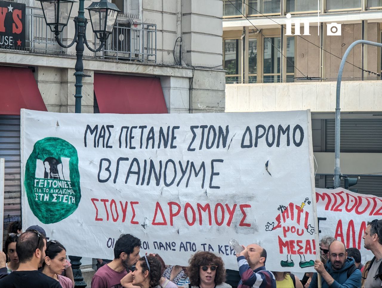 Πλήθος κόσμου συγκεντρώθηκε το απόγευμα του Σαββάτου στο κέντρο της Αθήνας, ανταποκρινόμενο στο κάλεσμα φορέων και συλλογικοτήτων για τις Παγκόσμιες Ημέρες Δράσης για τη στέγη. Η πορεία που ακολούθησε ήταν ιδιαίτερα μαζική, στέλνοντας ένα ισχυρό μήνυμα ενάντια στην εμπορευματοποίηση της στέγης.