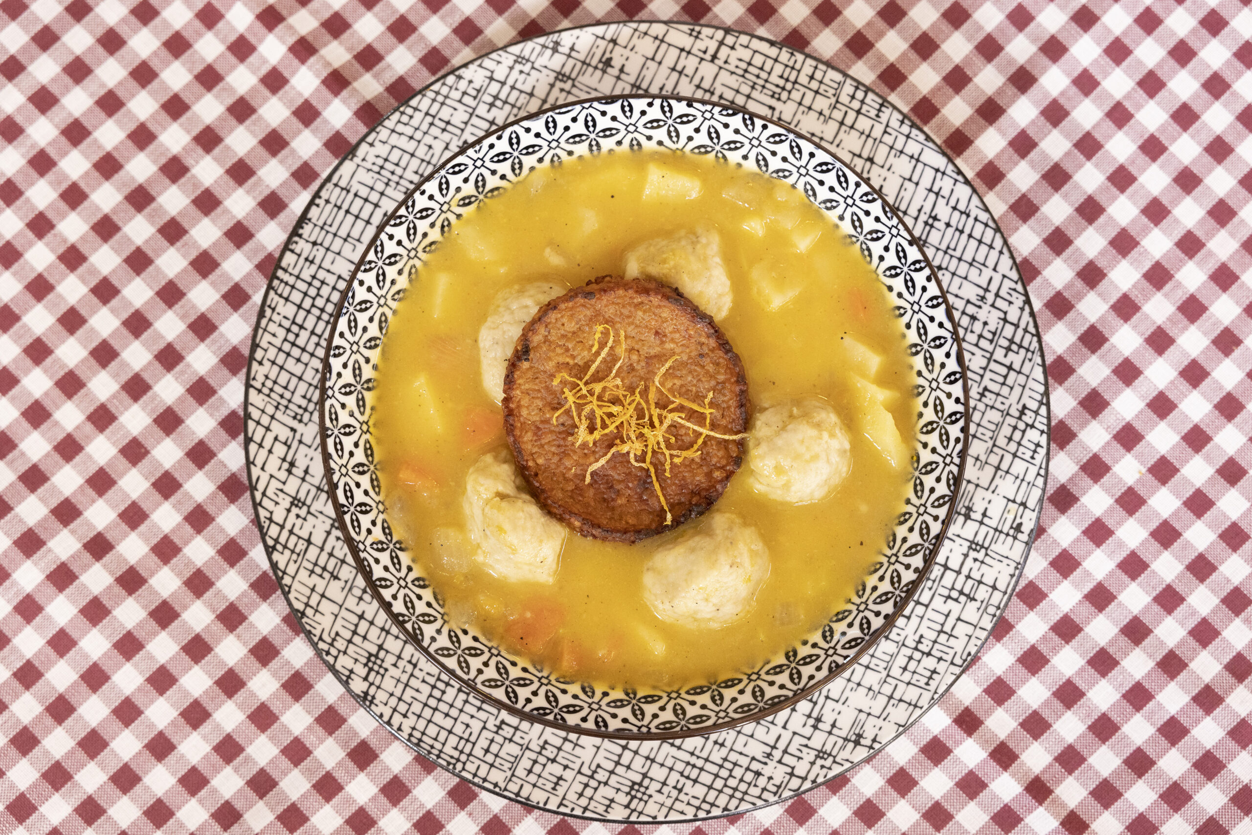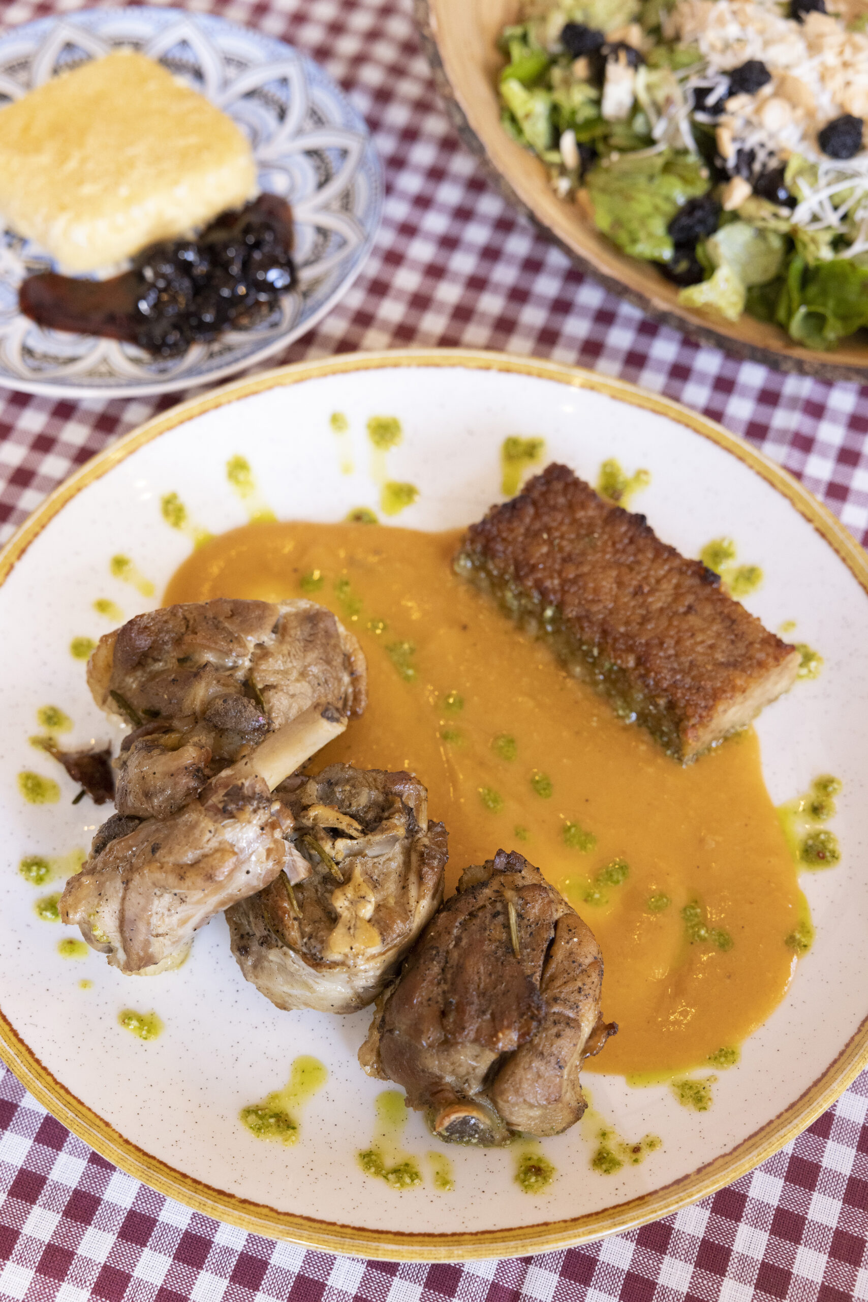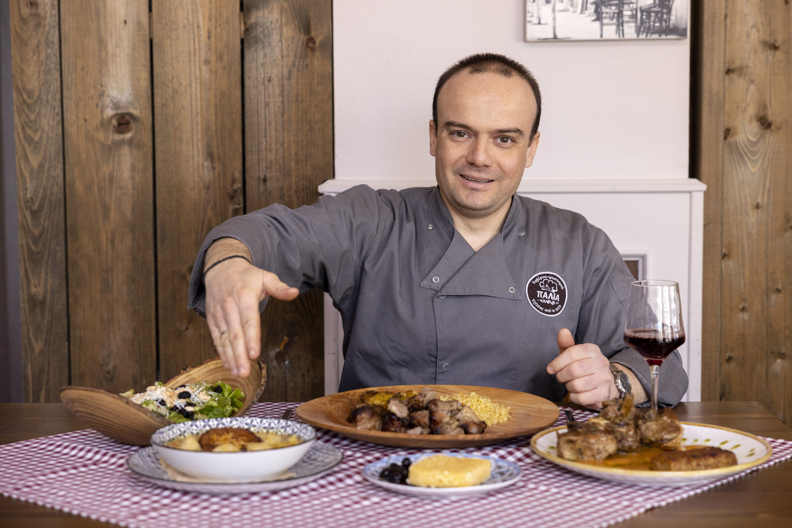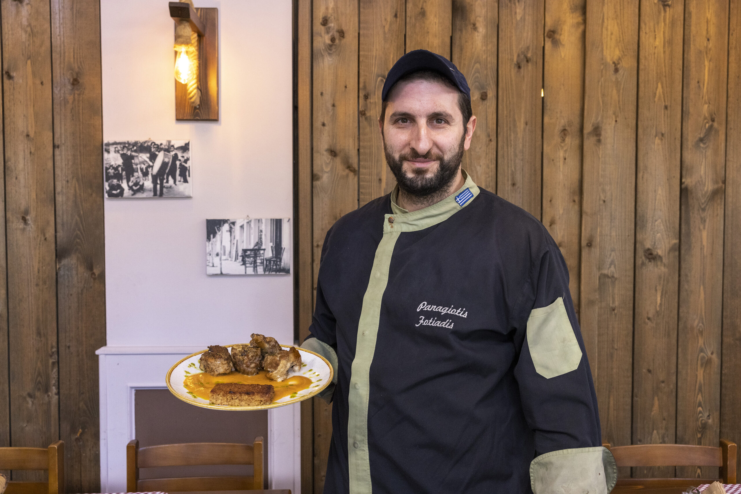 Πιάτο που ξεχωρίζει είναι αυτό του κοτόπουλου noodles με ψημένο τραχανά. Όσο για σαλάτα, πράσινη Εδέσσης με έντονο τοπικό χρώμα, άρωμα και γεύση. Εκτός από μαρούλι, περιλαμβάνει κεράσια, τυρί μπάτζο, αμύγδαλα, βινεγκρέτ.