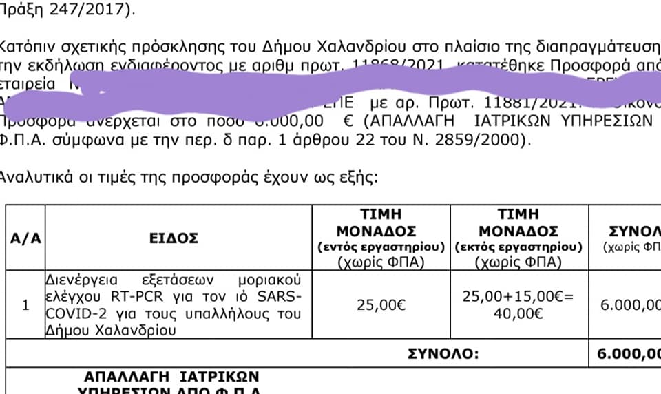 «Επειδή πολύς λόγος γίνεται για την τιμή του μοριακού τεστ ανίχνευσης του κορωνοϊού και για την επιβολή πλαφόν στα 47 ευρώ, που παρουσιάστηκε ως δήθεν μεγάλη παρέμβαση στην ελεύθερη αγορά, ενημερώνω ότι ο δήμος Χαλανδρίου έχει ενεργή σύμβαση με ιδιωτικό εργαστήριο για την ανίχνευση κορωνοϊού για τους υπαλλήλους του δήμου με μοριακό τεστ στην τιμή των 25 ευρώ, από τον Μάιο του 2021» αναφέρει συγκεκριμένα στην ανάρτησή του ο κ.Σίμος Ρούσος.