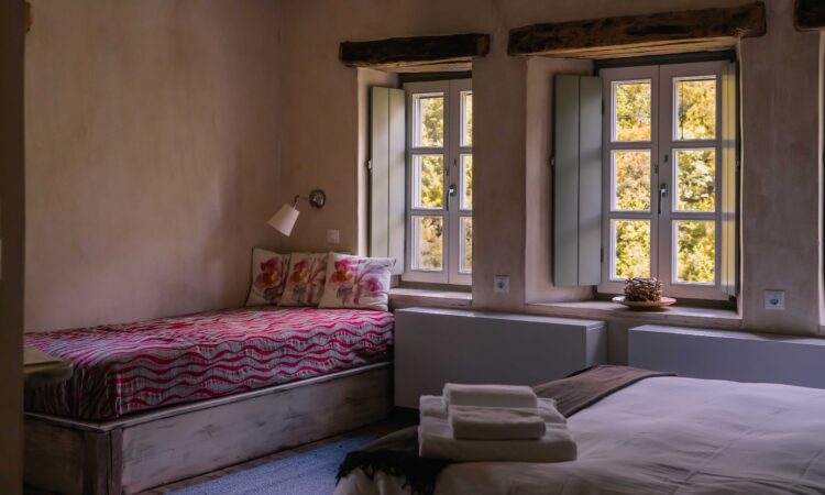 Τρία πέτρινα κτίρια σε διαφορετικά επίπεδα με 15 δωμάτια και μια σουίτα που έχουν πολλά χρωματιστά στοιχεία και επώνυμο εξοπλισμό.
