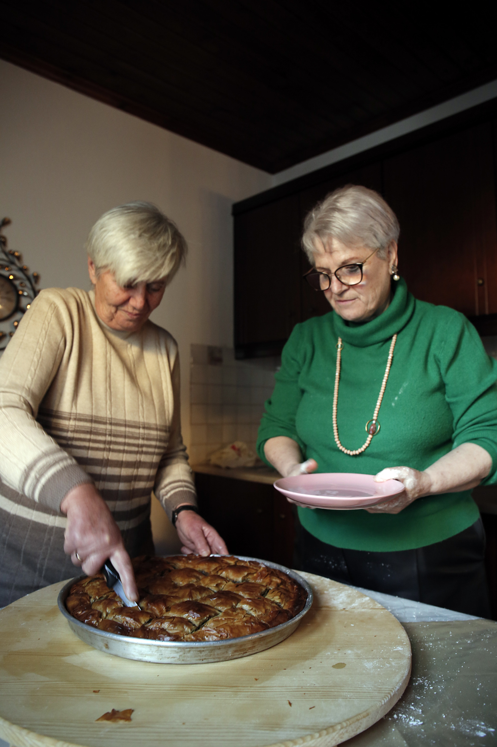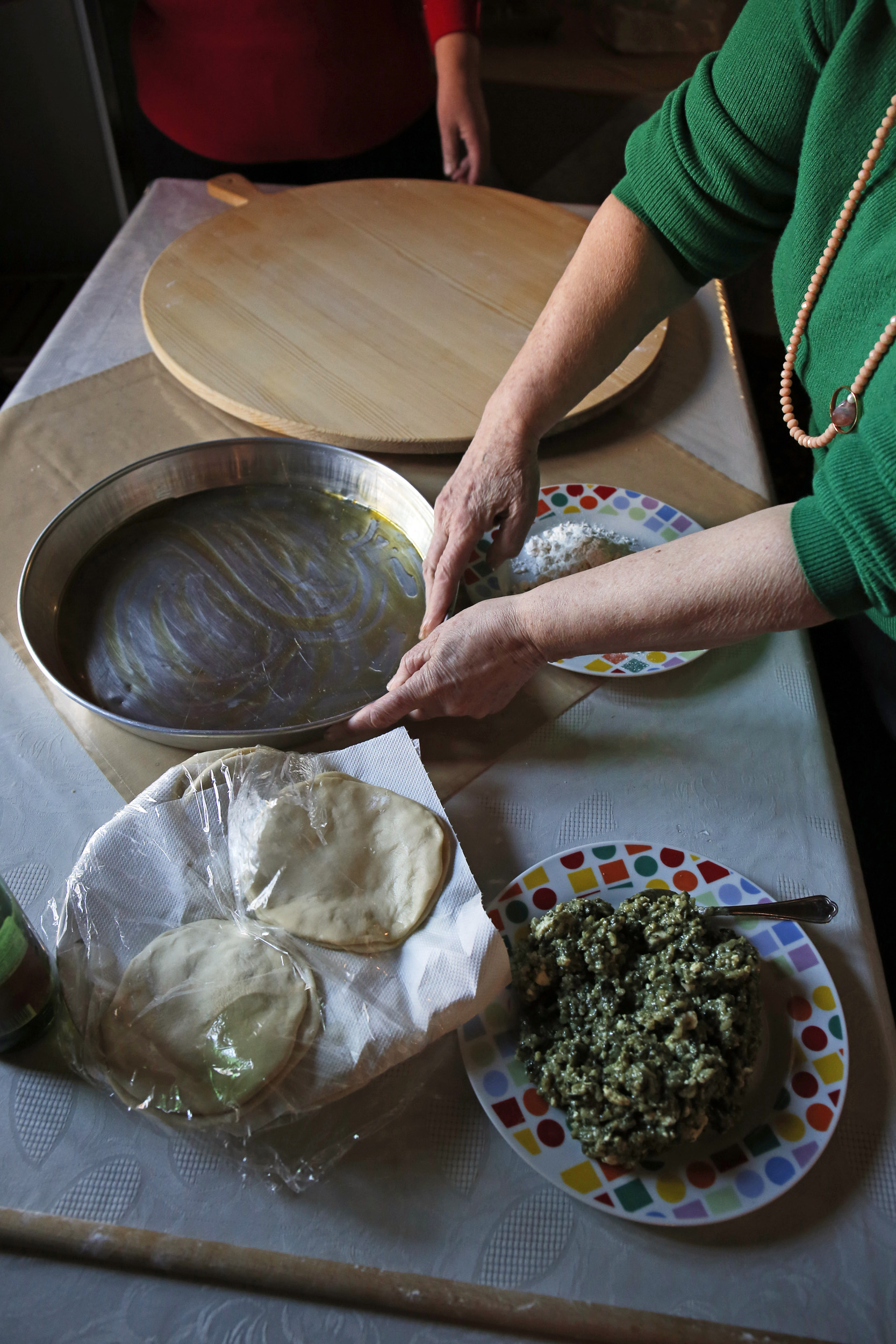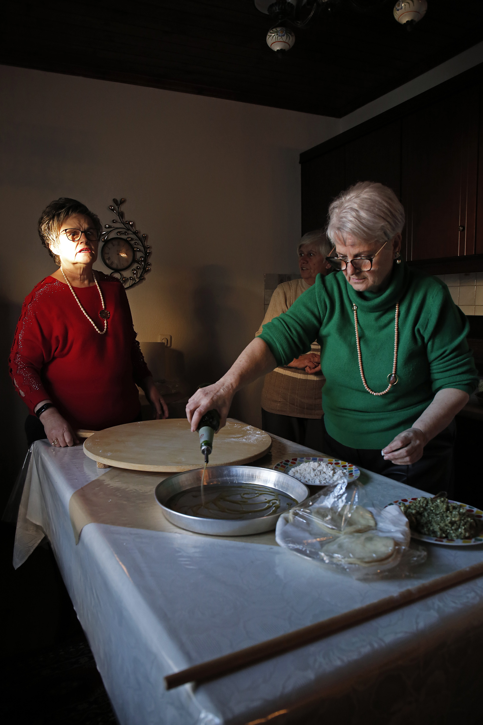«Εδώ παλιά, οι γονείς μας έφτιαχναν πίτες σαν το μοναδικό κύριο φαγητό της μέρας. Είχαμε τις πίτες σαν το καθημερινό μας φαγητό» λέει η Αλεξάνδρα Βελετάνη καθώς ετοιμάζει μαζί με την Κατερίνα Γιαννούδη και τη Βούλα Παρασκευαΐδη την παραδοσιακή σπανακοτυρόπιτα της Ραψάνης.