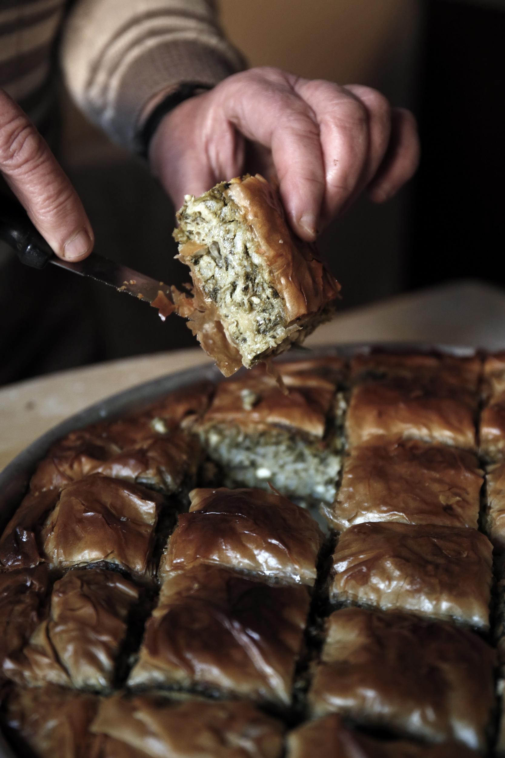 «Αυτή η σπανακοτυρόπιτα γίνεται και χωρίς τυρί, νηστίσιμη, και φτιάχνεται παραδοσιακά τη Μεγάλη Πέμπτη. Δεν βάζουμε μέσα μόνο σπανάκι αλλά και άλλα άγρια ανοιξιάτικα χόρτα, όπως τσουκνίδα αλλά και λίγο αλευράκι για να τραβήξει τα ζουμιά» λέει η Αλεξάνδρα Βελετάνη».