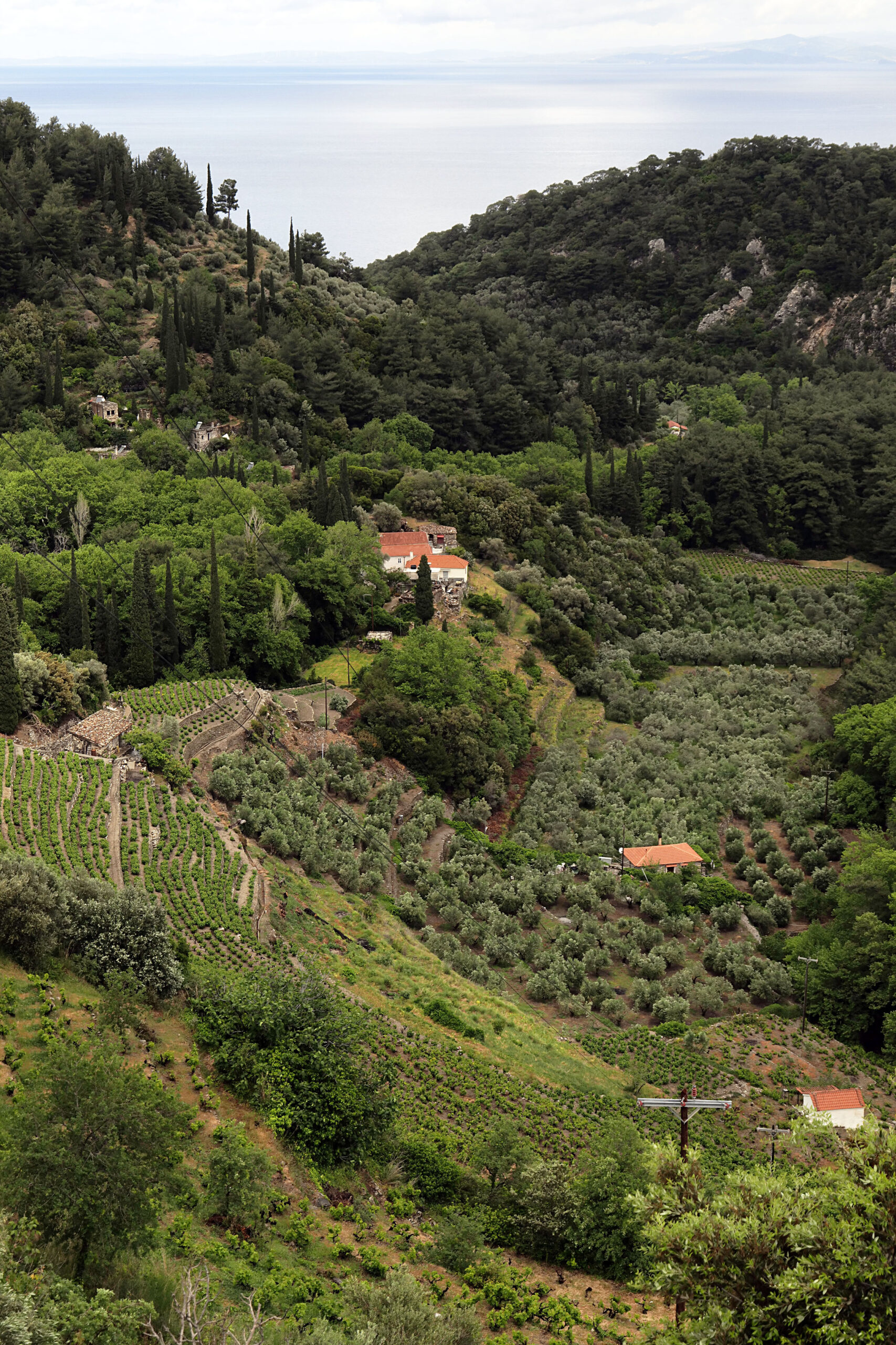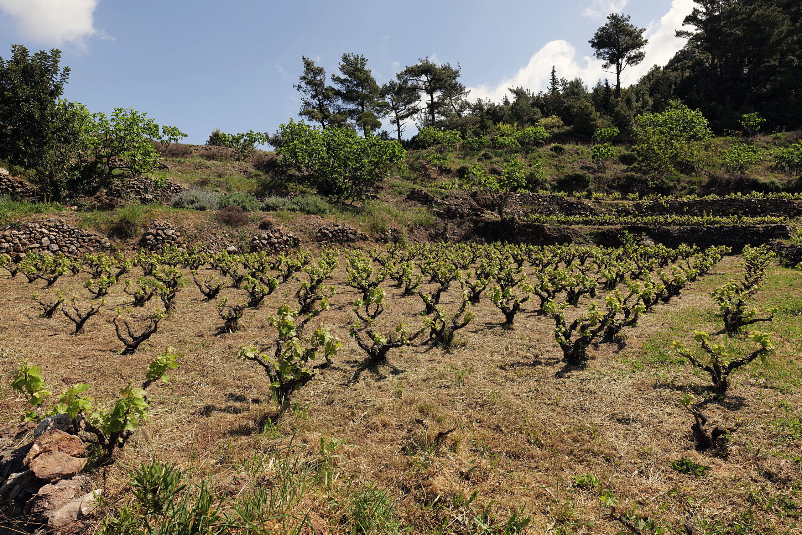 Αμπελώνες σαν κρυμμένοι μέσα στα βουνά, αναβαθμίδες περιποιημένες, φτιαγμένες χειροποίητα με σεβασμό στην τοπική παράδοση, βιοδυναμικοί καλλιεργητές, σχεδόν απομονωμένοι αλλά απόλυτα αφοσιωμένοι στην αγροτική τους ενασχόληση, όπως ο Σταμάτης Στασινής, αλλά και κάποιοι, σαν τον Στέλιο Μιχάλαινα, ο οποίος, σαν ενεργό ηφαίστειο, με τρέχει πάνω -κάτω σε νέα αμπέλια, έως 20 ετών αλλά και σε σημεία με πολύ παλαιότερα, σχεδόν ενός αιώνα, από την περιοχή των Λογαράδων πάνω από τον Άγιο Κωνσταντίνο μέχρι τα εντελώς αμφιθεατρικά ανάμεσα στις Μανωλάτες και τους Βουρλιώτες, μιλώντας μου παράλληλα και αδιάκοπα για τα φυτά, τα αμπέλια και, φυσικά, τα αποτελέσματά τους. Η ομορφιά του τόπου και ο συνδυασμός των αμπελιών στην πιο πράσινη εκδοχή τους για φέτος με την οργιώδη βλάστηση της Σάμου, είναι μια εικόνα η οποία δύσκολα εκφράζεται με λόγια.