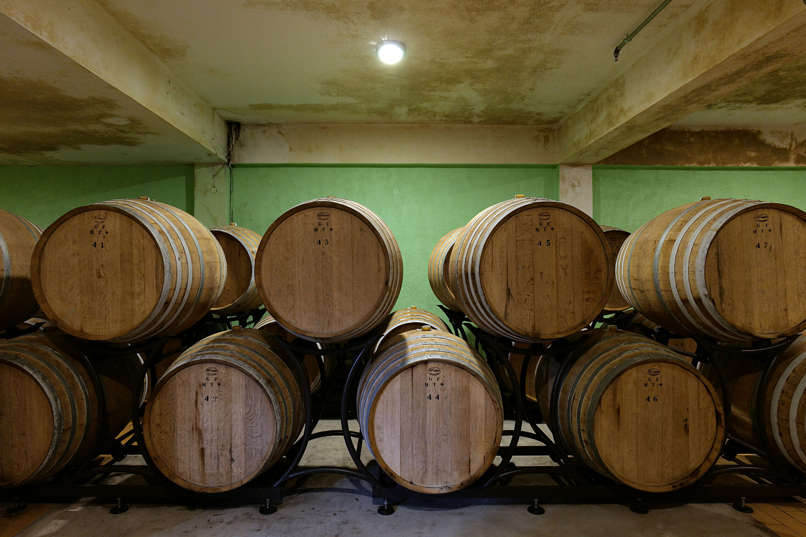 Στην αίθουσα με τα τεράστια, ακλόνητα βαρέλια, μας περιμένει και ο Γιώργος Δαγλής, βαρελοποιός αλλά και συντηρητής βαρελιών για πάνω από 40 χρόνια. Καθώς στέκεται δίπλα σε ένα από ένα από τα δεκάδων τόνων βαρέλια, μοιάζει σαν να αγγίζει το περίβλημα όλης της ιστορίας του κρασιού στη Σάμο. Σήμερα, αυτοί οι γίγαντες απλώς στολίζουν το μουσείο. Το πολύτιμο προϊόν ωριμάζει σε δρύινα βαρέλια από 225 έως 750 λίτρα σε διαφορετική αίθουσα, στο υπόγειο του κτιρίου.