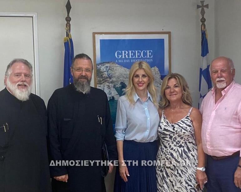 Δόθηκε από τον π. Σπυρίδωνα οπτικοακουστικό ελληνικό και ξενόγλωσσο υλικό με τα Ι Προσκυνήματα, τις Μονές και της Εκκλησίες στην Ελλάδα και αποφασίστηκε η πραγματοποίηση επισκέψεως γνωριμίας την επομένη ημέρα με την νέα Ηγεσία του Υπουργείου Τουρισμού στο Γραφείο της Νέας Υπουργού Τουρισμού Εξοχωτάτης κ. ¨Ολγας Κεφαλογιάννη
